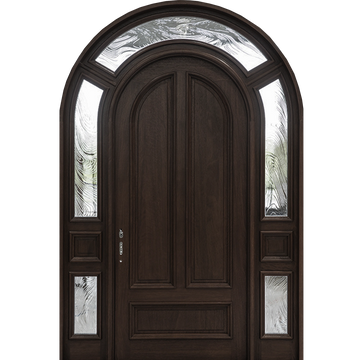 Old World charm. Timeless sophistication. With its sweeping arch and finely sculpted detail, the Valencia brings a graceful European touch to any grand entryway. The textured glass adds privacy while casting a warm, dappled light — creating an entrance that’s both elegant and inviting. Perfect for homes with Mediterranean, Colonial, or traditional styling, the Valencia is a true statement of refined design. Graceful. Lasting. Effortlessly classic.